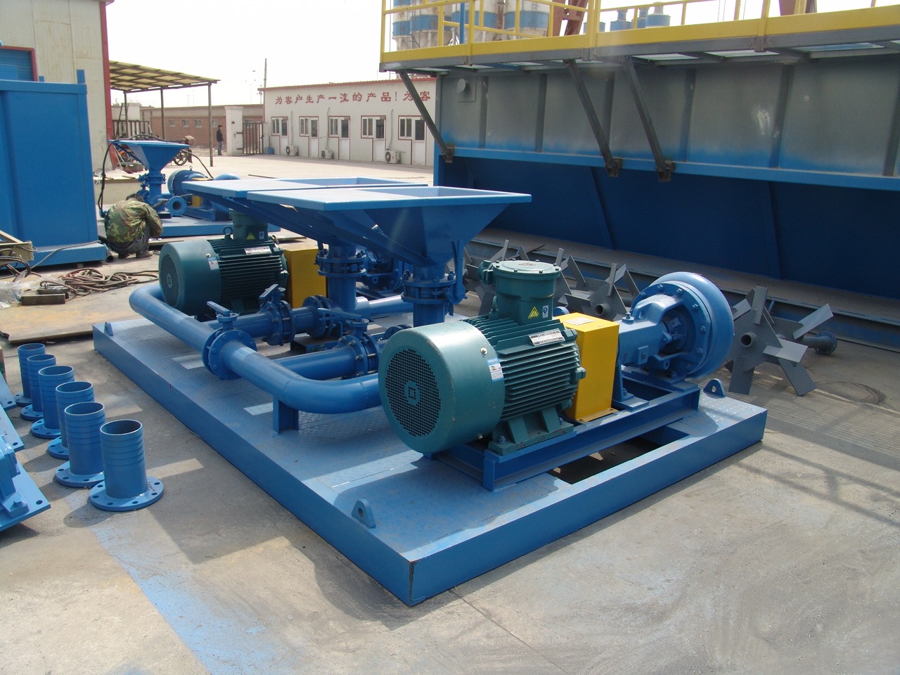 射流混漿裝置是與石油鉆井固控系統(tǒng)配套使用的一種設(shè)備,它可以滿足1500米到6000米鉆井固控系統(tǒng)鉆井液的加重和配制,混漿裝置由一臺(tái)砂泵和一臺(tái)射流式混合漏斗用管匯閥門(mén)聯(lián)接安裝在一個(gè)底座上組成的。性能安全可靠,移運(yùn)方便。