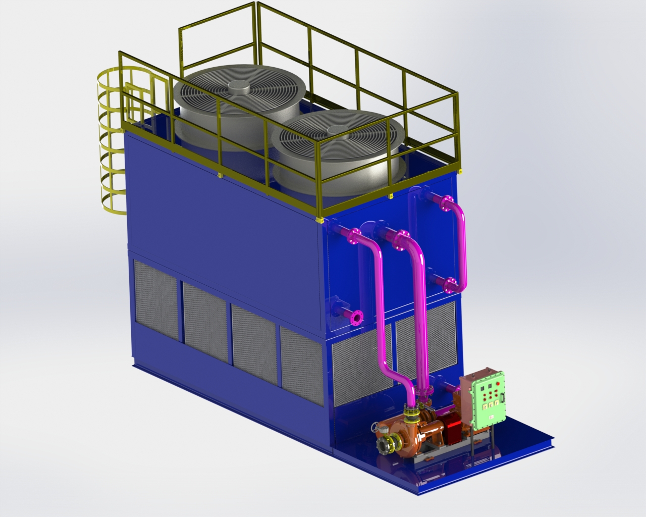 目前已廣泛地適用于工業(yè)循環(huán)介質封閉式冷卻系統(tǒng),如石油和化工行業(yè)、新能源行業(yè)、制藥和生物技術行業(yè)、電力行業(yè)等。此結構尤其適用于干旱、缺水地區(qū);油田鉆井泥漿冷卻、天然氣水合物、凍土帶鉆井、油氣鉆井、地熱鉆井等。