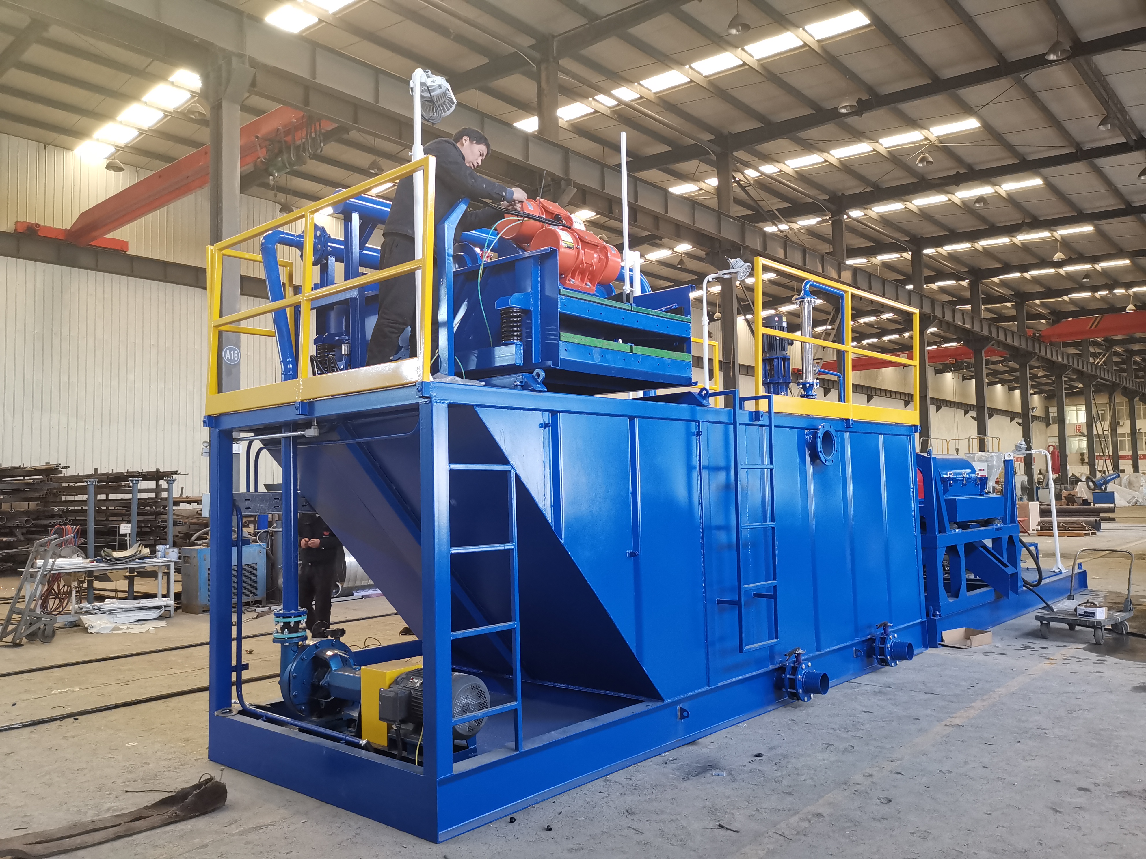 就行業(yè)目前的現(xiàn)狀來看,泥水處理系統(tǒng)的工作流程如下:先由預(yù)篩分器的兩層粗篩震動(dòng)對泥漿進(jìn)行篩選,分離其中粒徑在3毫米以上的顆粒物;再由一級儲漿泵槽對余下的泥漿進(jìn)行篩分,利用兩套一級旋流器并使用兩臺渣漿泵進(jìn)行輔助進(jìn)料,旋流除砂器對泥漿進(jìn)行分選,并由下端的沙嘴將粒徑較小的泥砂排出,落入到下層的細(xì)篩中,一級中儲箱用于分篩其余泥漿,可直接進(jìn)行一、二級儲漿槽也可經(jīng)由排漿管排出,流入二級旋流器除砂器中,由其進(jìn)漿泵泵入二級旋流除砂器組中,最終將流口流出的泥漿由上層的除泥篩細(xì)篩進(jìn)行篩分,經(jīng)過此過程,一、二級旋流器底的泥漿經(jīng)過篩分和脫水后,可以在一定程度上分離渣料和漿液,篩分出的漿液由一級儲漿槽池進(jìn)行存儲。